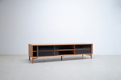 別具特色的L型櫃腳撐起了親和的矩形實木櫃體,有著穿透感的灰色玻璃門片,讓使用上更顯便利,內層層板可以做 3 個不同高度的彈性調節,搭配您的需求使用。另有抽屜及木拉門片可供選擇。